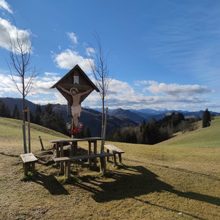 Wegbeschreibung: Vom Parkplatz wandert man den Schotterweg rauf und folgt den Markierungen - nach rund 10 Minuten habe ich das Aussichtsplataeu "Schneeherrgott" bereits erreicht (angeschrieben mit 20 Minuten), dort hält man sich links und folgt wieder der Markierung rauf in den Wald. In leichten Serpetinen geht es zum Kruckenbrettl, welches ich nach weiteren knappen 40 Minuten erreichen. Wer weiter gehen möchte folgt dem Pfad, wandert einen Teil bergab und über die lange Almwiese - dort gibt es wieder einen Einstieg in den Wald Richtung "Herndleck". Diesem Schild folge ich und halte Ausschau nach der Teufelskirche. Man erreicht eine Gabelung, wo auch der Weg zur Grünburger Hütte angeschrieben ist, dort folgt man dem Weg Richtung Herndleck weiter, durchgehend den Wald rauf und erreicht das Gipfelkreuz der Teufelskirche (knapp 30 Minuten vom Kruckenbrettl).