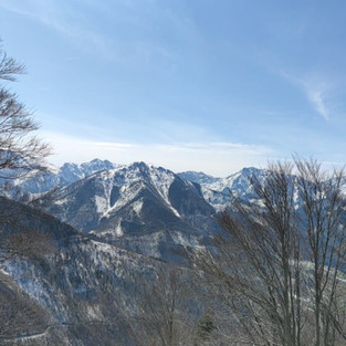 Diesem Pfad folge ich hoch bis zu einer Lichtung und traumhaftem Ausblick (siehe Foto). Danach halte ich mich links dem Pfad nach oben rauf und folge diesem immer weiter, bis ich nach knapp 50 Minuten das Gipfelkreuz Reitberg (1001m) entdecke. Das Kreuz ist ein wenig über dem Pfad, also nicht vorbei laufen. Danach setze ich meinen Weg fort und folge dem Pfad, der leider aufgrund des Schnees tlw. sehr schwer zu erkennen ist. Ich erreiche die Jagdhütte Toif und orientiere mich ab nun mit der Alpenvereinapp, da keine Markierungen mehr ersichtlich sind.